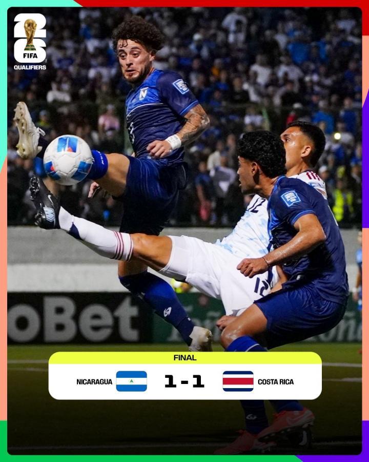 就是在这样艰难的局面下,尼加拉瓜第81分钟点射攻破纳瓦斯把守的大门,将1-1的比分保持到全场结束。